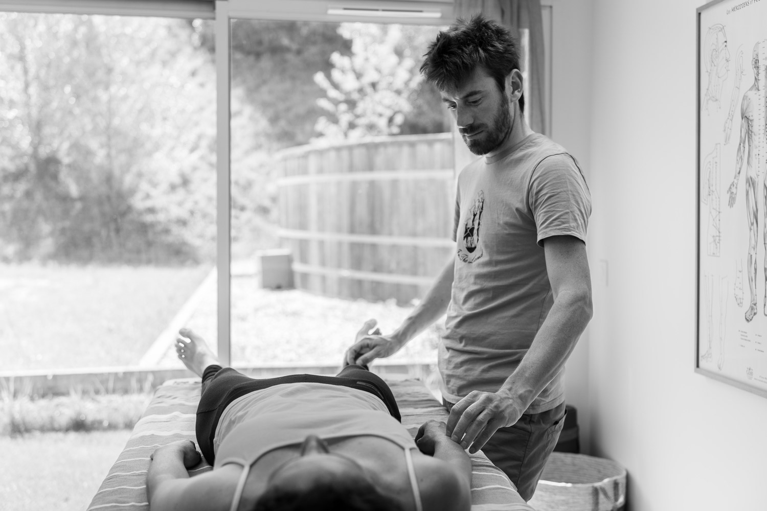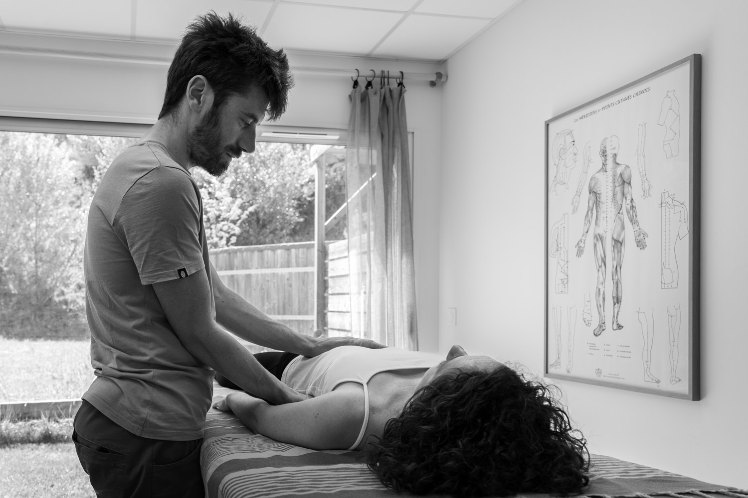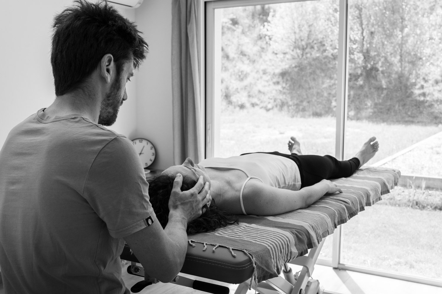 Les mains du thérapeute sont à l’écoute du corps afin de comprendre son histoire, être un point d’appui pour la personne.